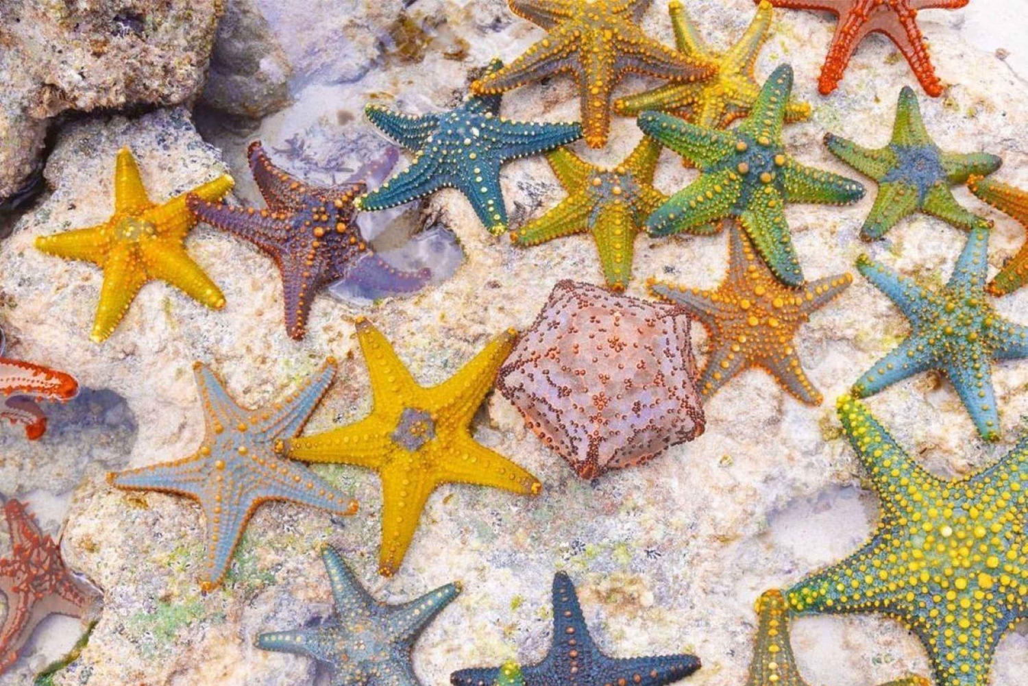 Tilbring en fascinerende aktiv heldagstur med at opdage Zanzibars vidundere! Spar tid og få mest muligt for pengene. Udforsk Mnemba Island Atoll Zanzibar! Nyd at snorkle, se og svøm med legesyge delfiner, og slap af på en lavvandet sandbanke. Besøg øen Pongwe Restaurant Zanzibar! En af de mest stemningsfulde udsigter på Zanzibar! Svøm og udforsk den fantastiske naturlige atmosfære i Kuza-grotten Jambiani! Nyd snorkling og udforsk det uberørte koralrev ved Blue Lagoon Atoll Zanzibar! Oplev Starfish Beach, et roligt og afslappende sted for både børn og voksne! Besøg The Rock Restaurant Zanzibar! En af de mest ikoniske udsigter på Zanzibar! Vi har eksklusive overraskelsesværdier, gratis opgraderinger og ekstraudstyr, der sikrer, at denne udflugt bliver din særlige ferie på Zanzibar.Includes