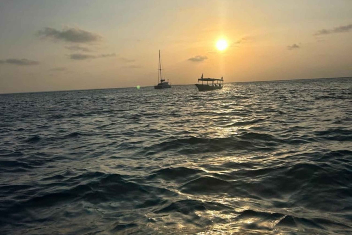 Erlebe die unvergleichliche Schönheit eines sansibarischen Sonnenuntergangs an Bord unserer traditionellen Holz-Dhow in Nungwi Beach. Mit dem Wind als Guide segelst du entlang der Küste von Nord-Sansibar und genießt die goldenen und bernsteinfarbenen Töne der untergehenden Sonne. Die Einschiffung auf einer traditionellen arabischen Dhow an der Küste Sansibars verspricht eine unvergessliche Reise mit vielen Bildern. Wenn die Sonne sich anmutig dem Horizont nähert, erstrahlt der Himmel in einem leuchtenden Orange-Gold und schafft eine zeitlose und stimmungsvolle Szene. Egal, ob du einen romantischen Moment mit deinem Partner oder einen fröhlichen Abend mit Familie und Freunden suchst, dieses Erlebnis ist ein absolutes Muss.Includes