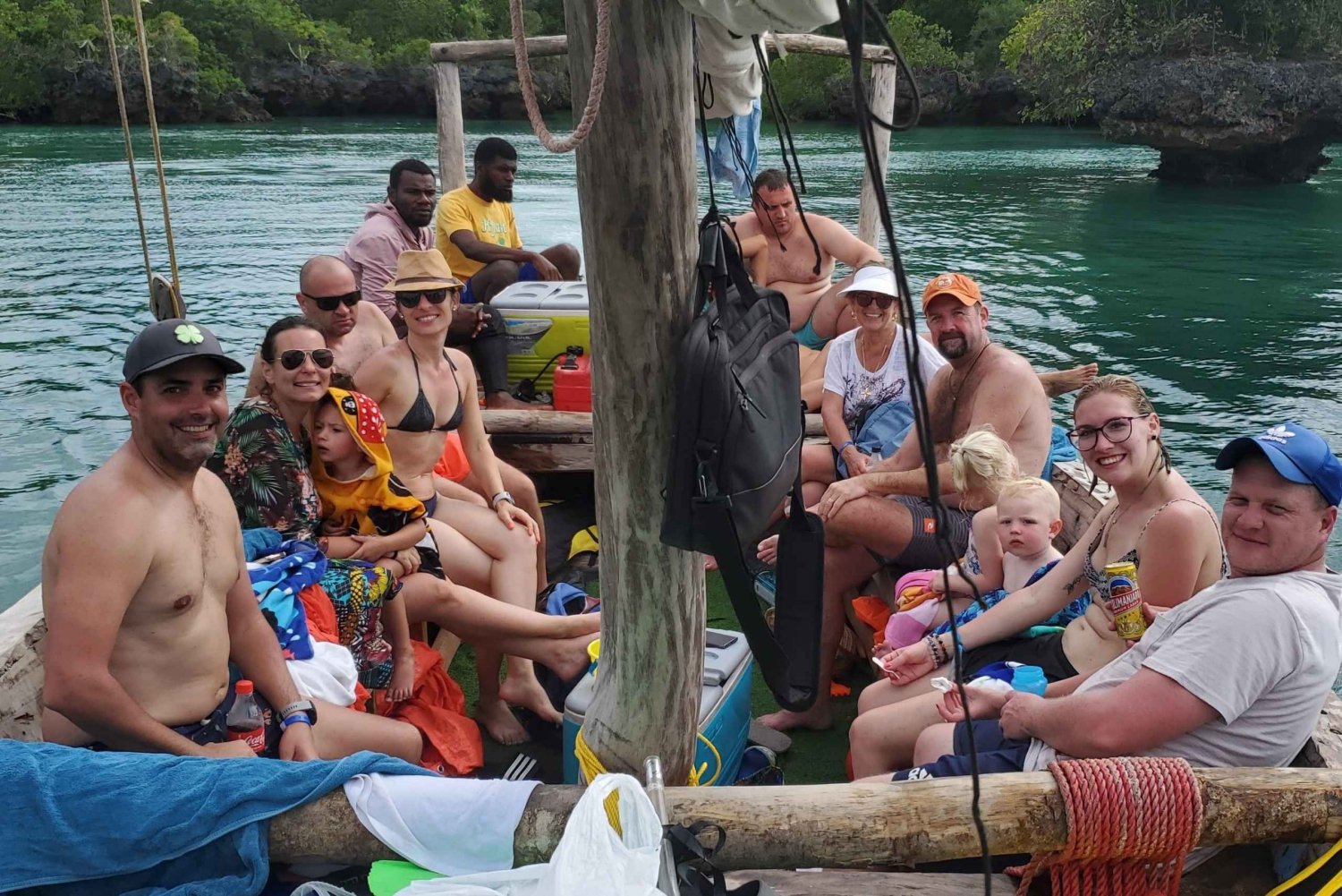 La excursión Safari Azul es una excursión de día completo en la zona de Kwale, en la bahía de Minai, que es uno de los mejores arrecifes de coral de Zanzíbar. Las principales actividades de la excursión incluyen la visita a bancos de arena naturales, nadar y bucear en las aguas cristalinas, visitar la isla de Kwale con su laguna verde natural y subir al viejo árbol Baobab para disfrutar de una vista espectacular de la isla. Si te gusta el océano, esta excursión es para ti. Serás testigo de innumerables peces de colores y otras criaturas marinas que sobreviven entre los arrecifes de coral y las plantas submarinas que juntos forman el ecosistema de la barrera de arrecifes de la bahía. Durante la excursión disfruta de la barbacoa de marisco fresco; Pulpo, Langostas, Calamares, Calamaris, Peces. Degustación de frutas frescas exóticas como Plátano, Sandía, Piña, Mangos. Éste será el mejor día de aventura de tu estancia en las Islas Zanzíbar, y entenderás por qué lo llamamos 'Safari Azul'.Includes