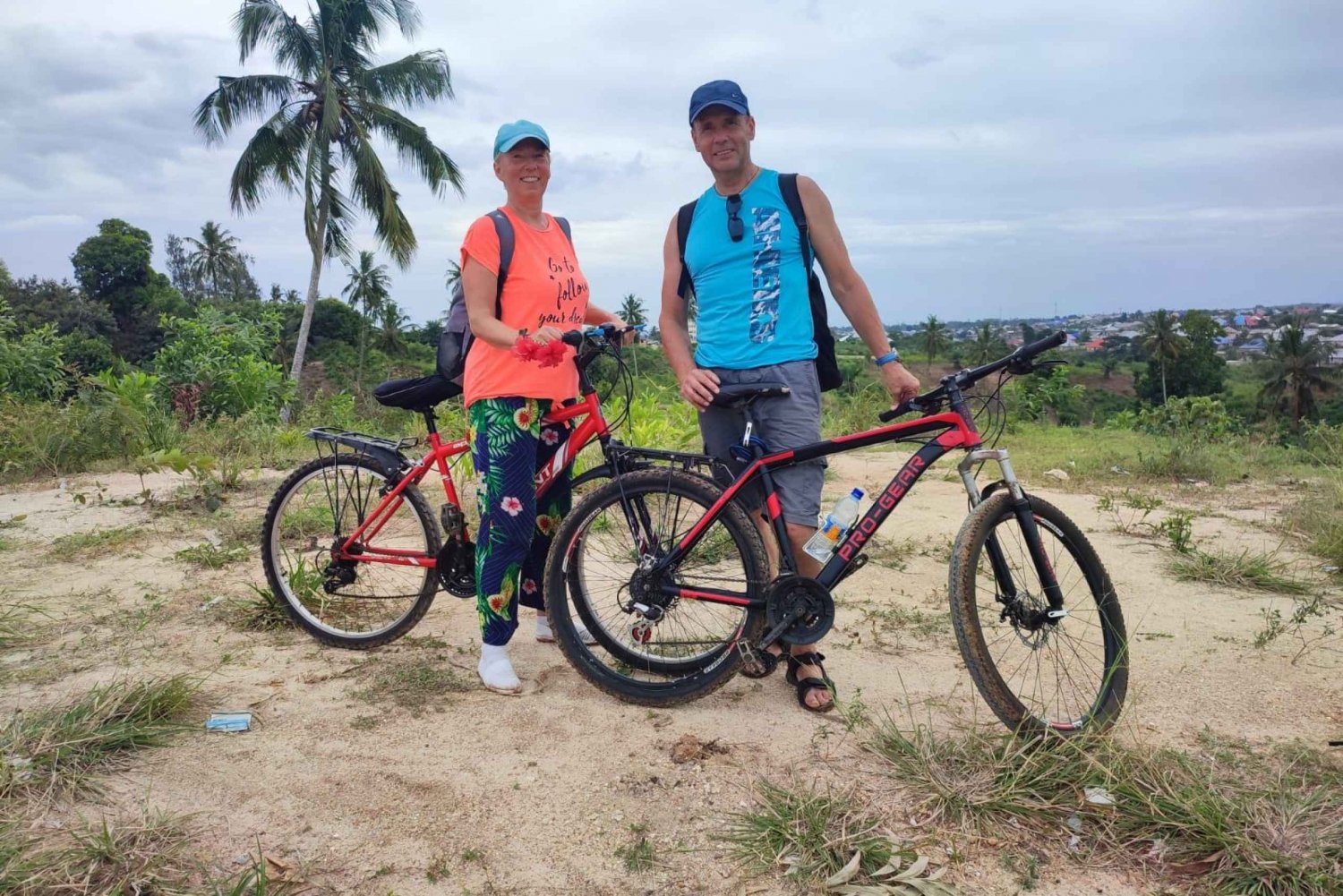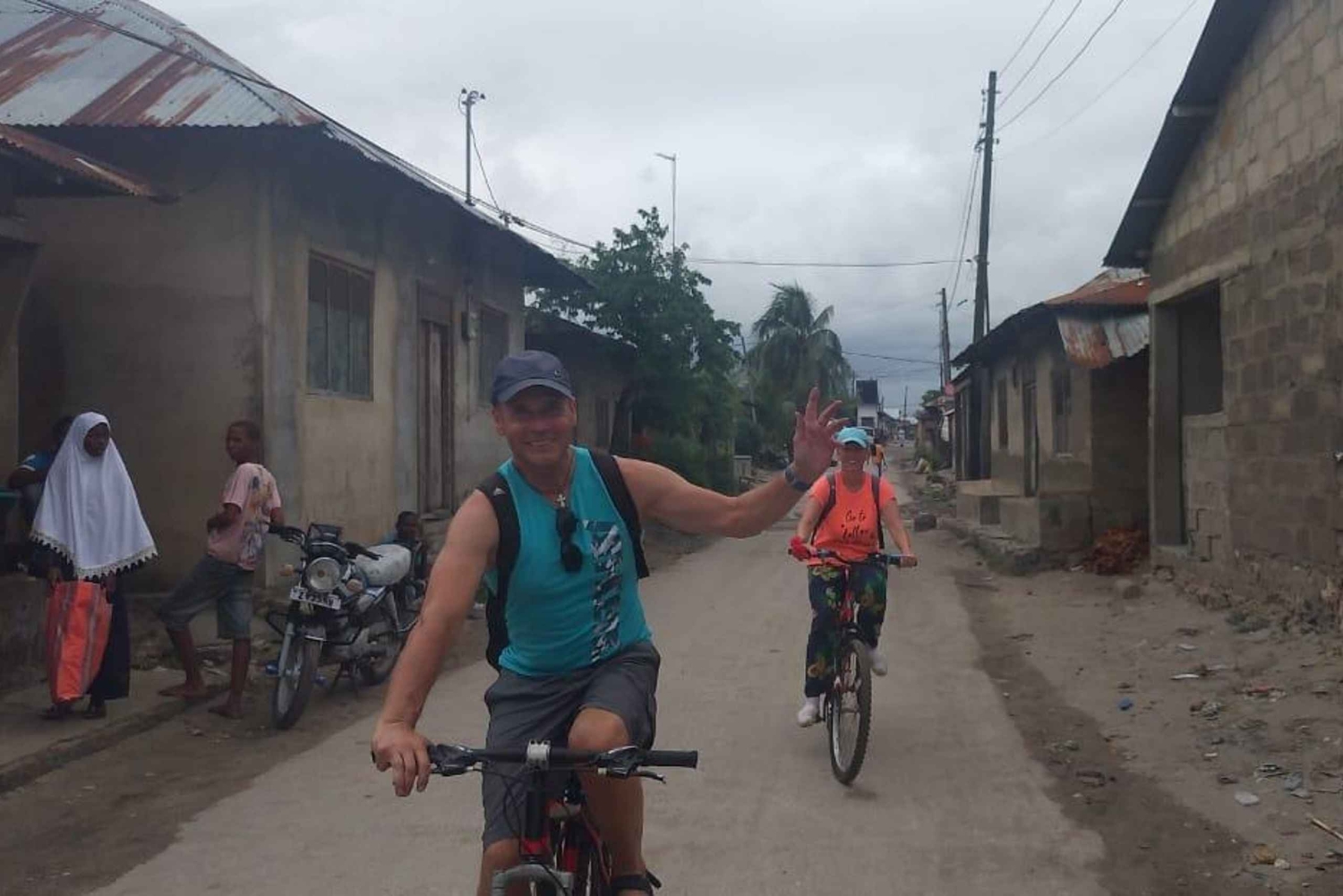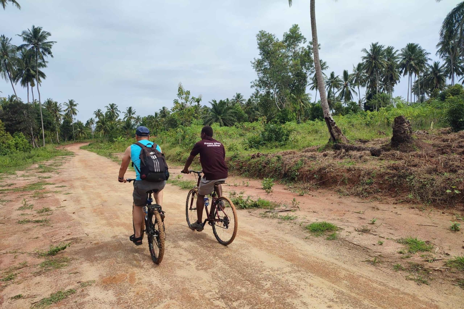 - This tour will take place shower or shine. This tour takes 14 kilometer to go and 14 km back to stone town bike trip. The main way, gravel road and off- road, are not in horizontally level. Optional - Minibus half way from Stone Town. Optional - Pick up and drop off from North and East hotels. The tour can end anywhere visitors may recommend.