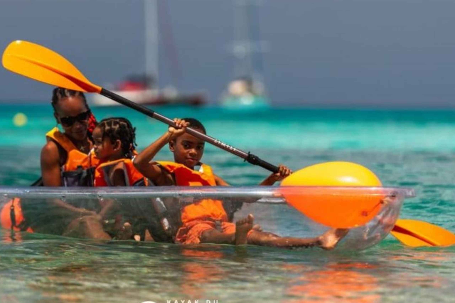 - Paddle a Transparent Kayak over clear waters.