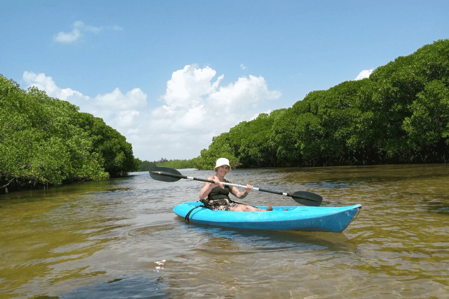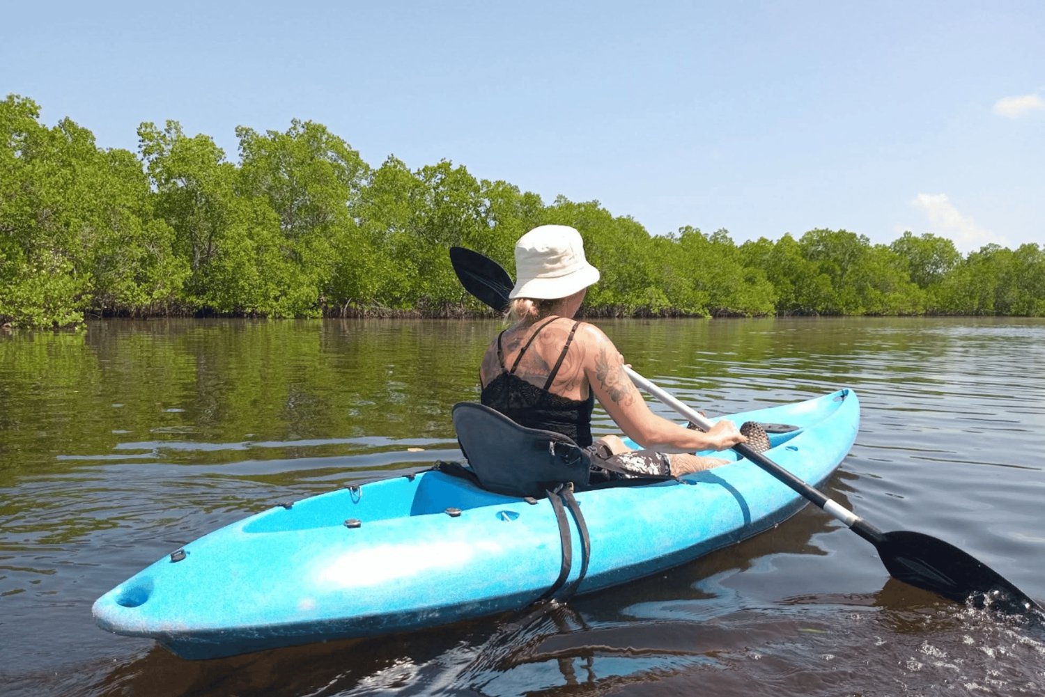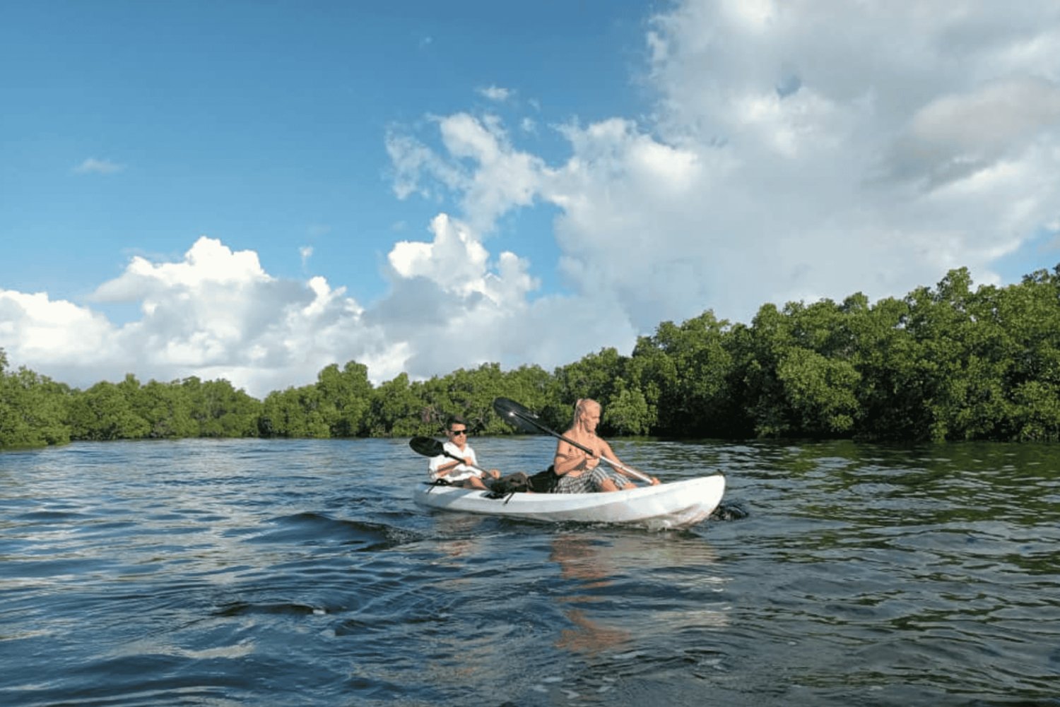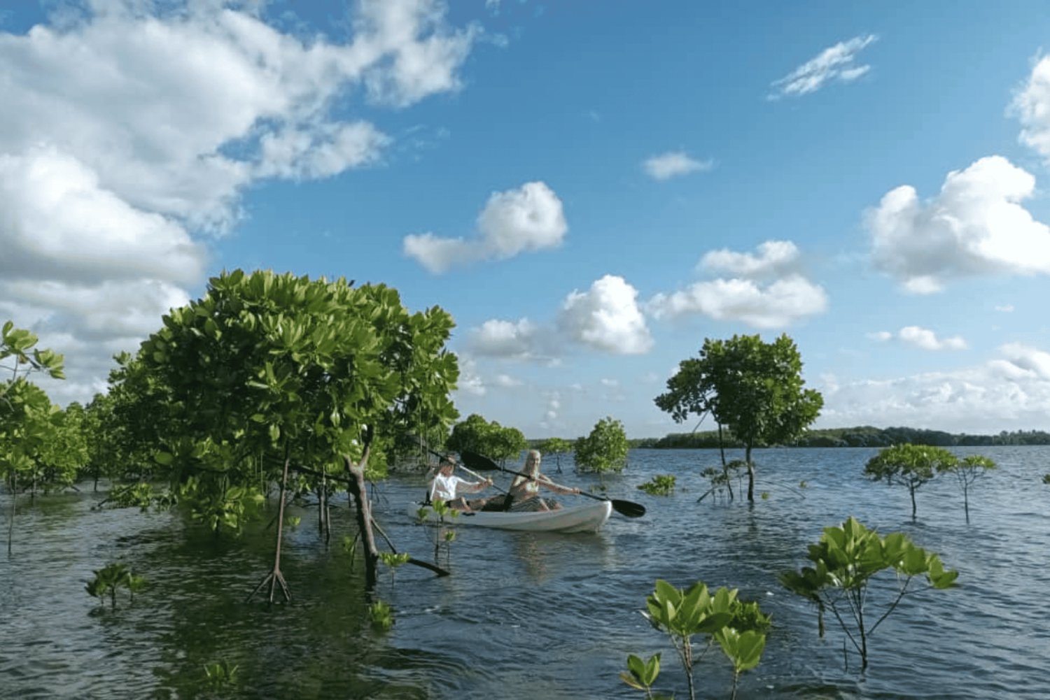 - Paddle through calm waters surrounded by lush green mangroves