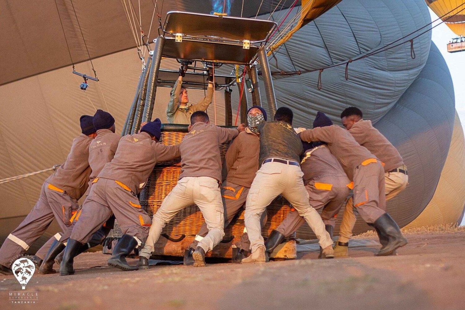 Aloita seikkailusi varhain aamulla noudolla majapaikastasi tai leiristäsi Land Roverilla tai Land Cruiserilla. Nauti yöajelusta matkalla kohti lähtöpaikkaa, ja voit bongata matkan varrella yöllisiä villieläimiä. Laukaisupaikalla tapaat lentäjäsi, saat turvallisuusohjeistuksen ja katsot, kuinka kuumailmapallo täyttyy tähtitaivaan alla. Lähde sitten aamunkoitteessa ja leiju lempeästi, kun aurinko nousee Serengetin ylle. Tuulesta riippuen pilotti voi lentää puiden latvojen korkeudella, jotta näet lähikuvan eläimistä alla, tai nousta jopa 300 metriin, josta on henkeäsalpaavat panoraamanäkymät loputtomille tasangoille. Nauti hiljaisuudesta polttimien räjähdysten välillä, jota vain luonnon äänet rikkovat. Laskeutumisen jälkeen juhlistetaan perinteisellä samppanjatilkkauksella, jota seuraa vastavalmistettu Out of Africa -tyylinen aamiainen upeassa erämaaympäristössä. Paikan päällä on myös kunnollinen kenttäkäymälä. Saat henkilökohtaisen kuumasafarisertifikaattisi ja tapaat safarikuljettajasi jatkaaksesi päivän eläinkierrosta. Myöhemmin saat linkin ilmaisiin kuviin lennostasi, jotta voit elää muistot uudelleen ja jakaa ne ystäviesi ja perheesi kanssa.Includes