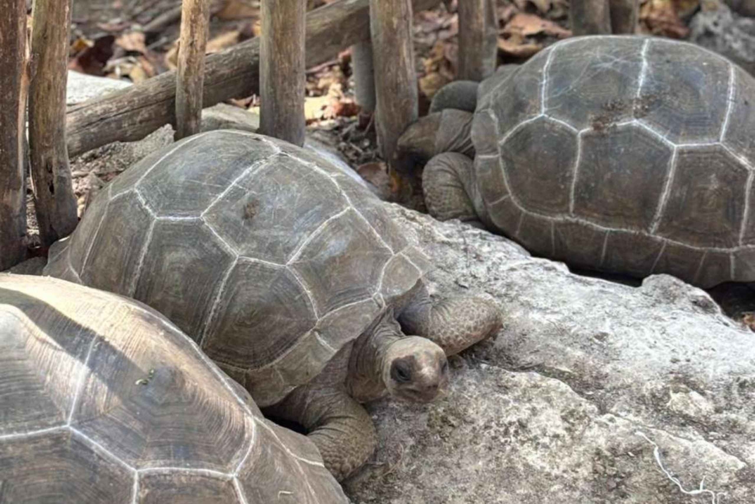 La visite débute à votre hôtel, après que le chauffeur vous ait pris en charge, et vous conduise à Stone Town, dans la région de Forodhani. Vous effectuerez ensuite une sortie en bateau de 20 minutes jusqu'à l'île de la Prison. Visitez un sanctuaire de tortues d'Aldabra, l'une des plus grandes tortues du monde, pesant jusqu'à 200 kilos, également connue pour être l'une des créatures les plus anciennes du monde. La tortue la plus âgée a plus de 196 ans. Découvrez ces tortues terrestres géantes qui ont été amenées à Zanzibar depuis les Seychelles. Vous pourrez également observer des paons aux plumes larges et brillantes, qui symbolisent la beauté, la royauté et la bonne fortune sur l'île de Prison Island. Interagissez avec ces créatures incroyables et prenez des photos. Fin de la visiteIncludes