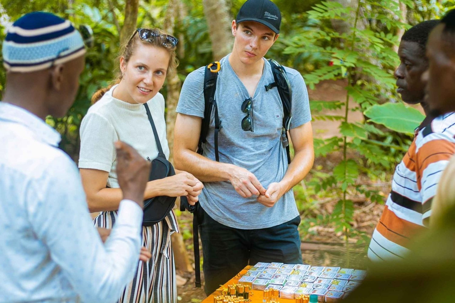 スパイス農場のツアーに参加して、トロピカルフルーツとスパイスの世界を体験してください。ザンジバルは、さまざまなスパイスが栽培されていることから「スパイスアイランド」としても知られています。熟練した現地ガイドと一緒に、2時間のウォーキングツアーをお楽しみください。 熱帯植物、木、スパイスがたくさんあるユニークな熱帯雨林の自然をお楽しみください。ザンジバル諸島で栽培されているターメリック、カルダモン、シナモン、ブラックペッパー、クローブ、ナツメグなどのさまざまなスパイスを体験し、味わい、香りを嗅いでください。 このツアーの最後には、フルーツ付きのスパイスライスランチを食べ、農場でスパイスを購入します。Includes