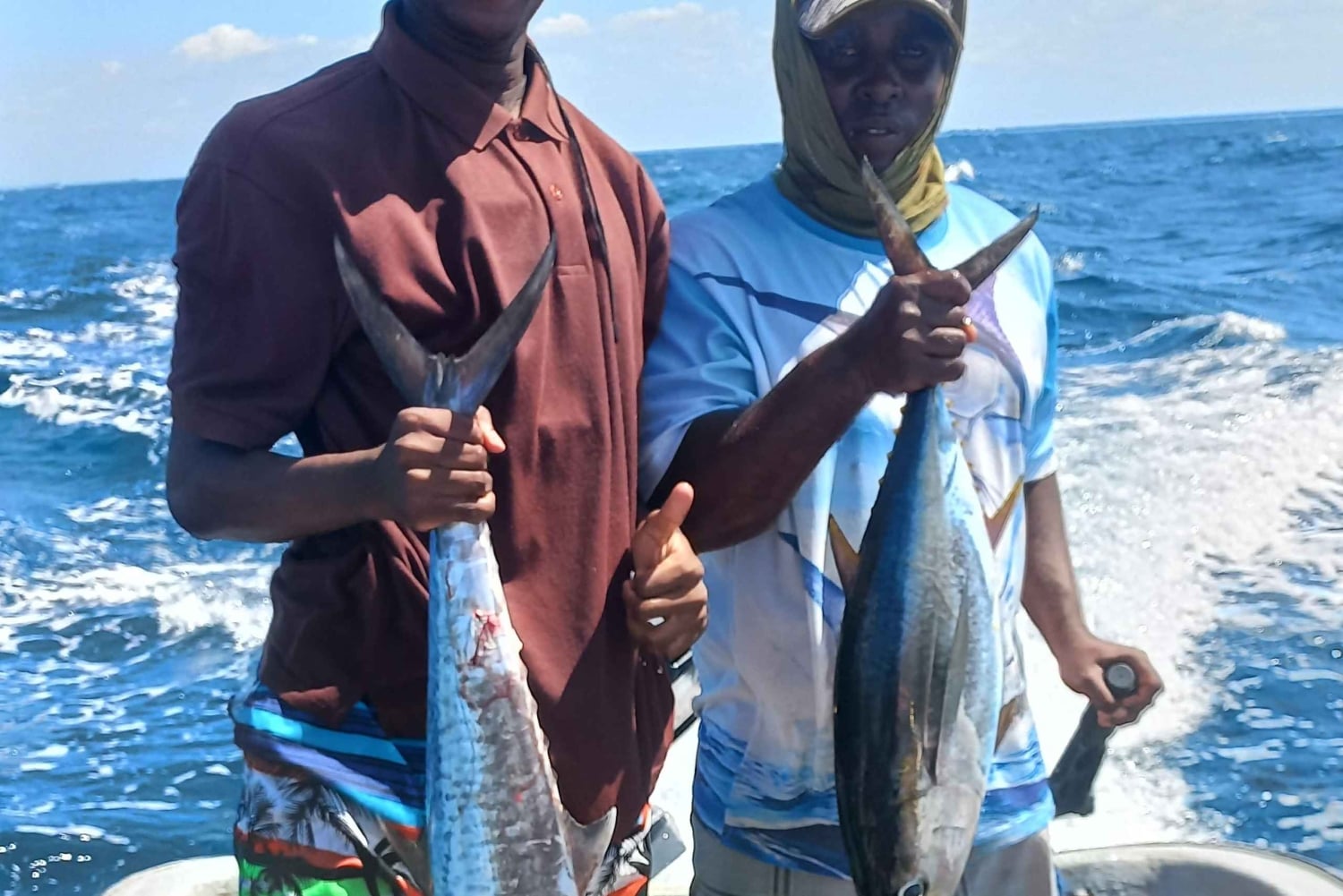 Het vissen begint vanuit Kizimkazi, we raden twee mogelijke vertrektijden aan: -06:00 AM -1:00 PM Er wordt gevist met kleine (7 meter) boten, één boot biedt plaats aan 2 vissers. De bemanning bestaat uit een kapitein en een assistent. De boot heeft geen dak omdat dit het vissen zou hinderen. Een hoed en zonnebrandcrème worden aangeraden tegen de zon. Water en fruit zijn beschikbaar in de boot. Het programma duurt meestal 4 uur, afhankelijk van de wensen van de gast. Meest gevangen vissen: Tonijn, Kingfish, af en toe marlijn of dorade.Includes