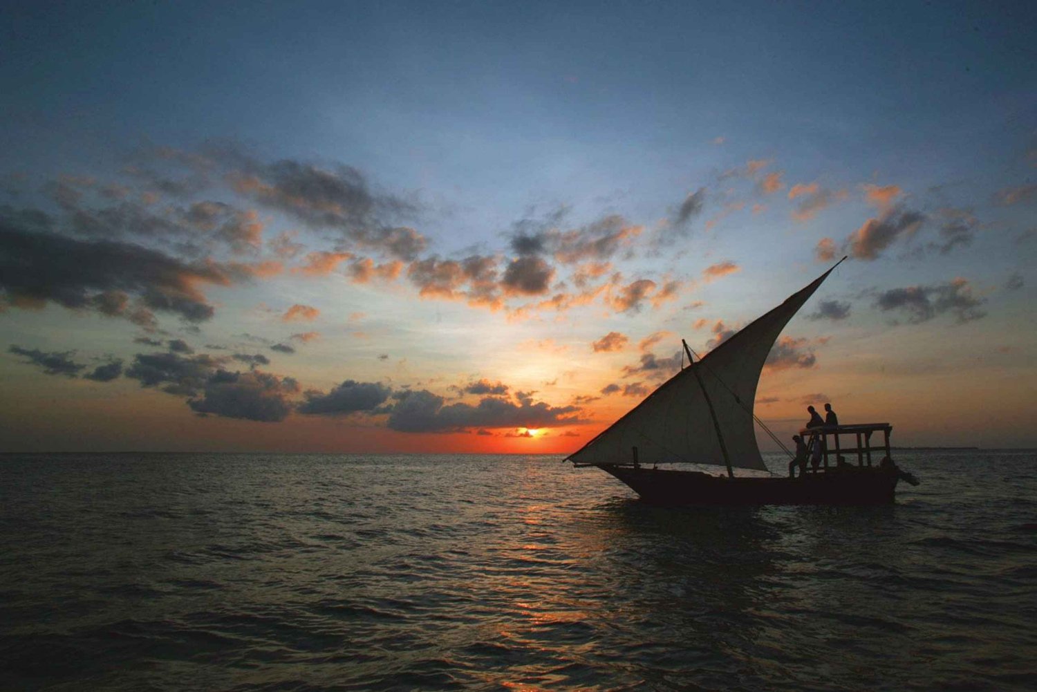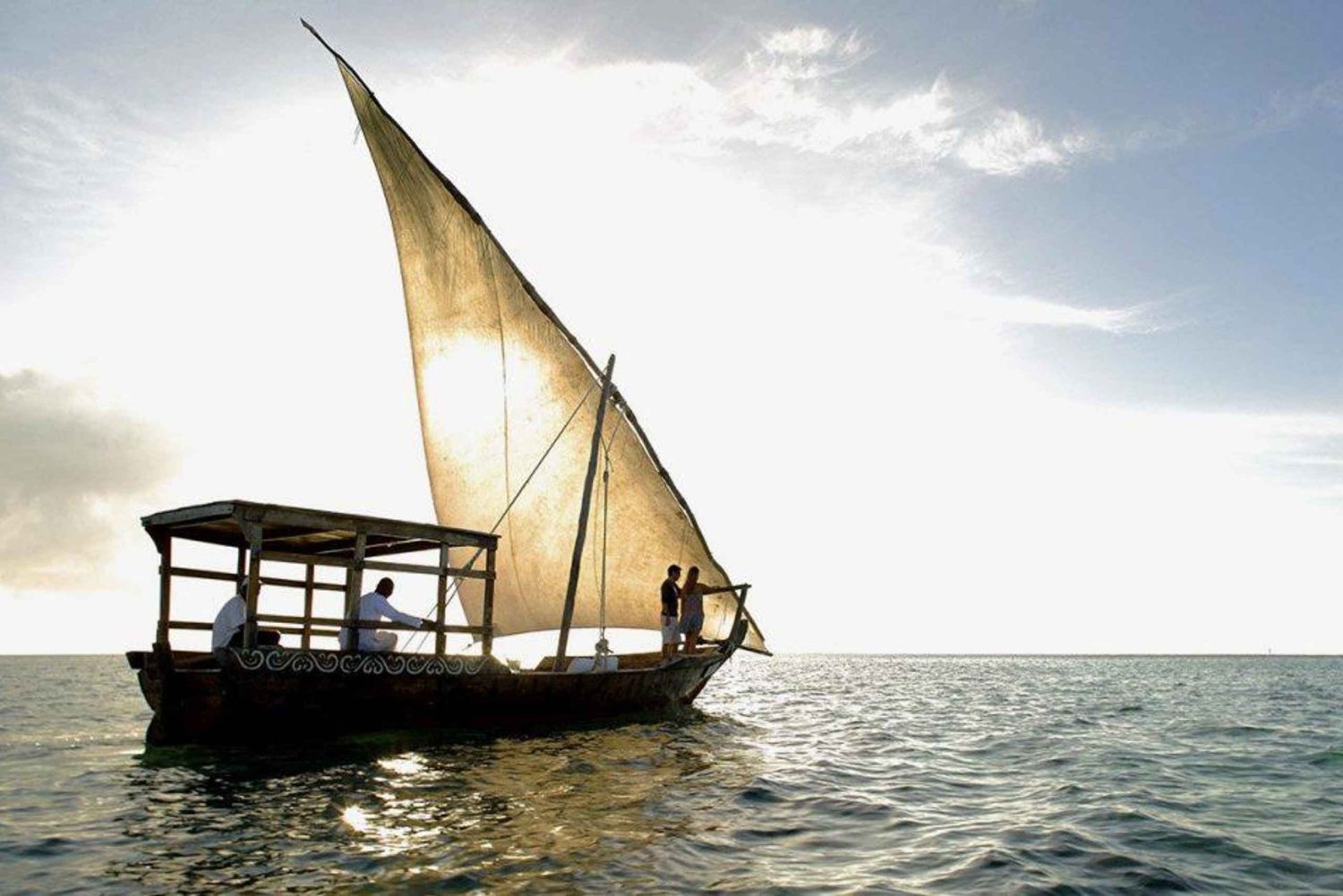 - Turen är privat, så du får en bekväm upplevelse utan folkmassor. Turen börjar kl. 18.30 från Nungwi Beach eller Kendwa Beach. I turen ingår ett besök nära Tumbatu Island, en obebodd turistö. Lokal musik är valfritt under solnedgången.